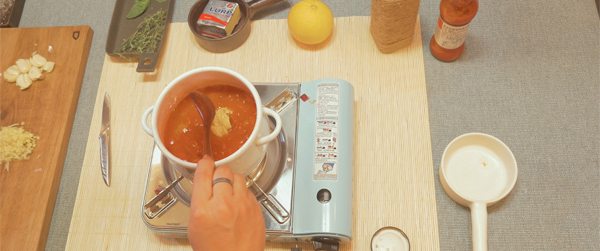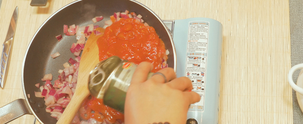 2、用黄油炒熟洋葱,加入去皮番茄酱,继续炒至洋葱变软。
