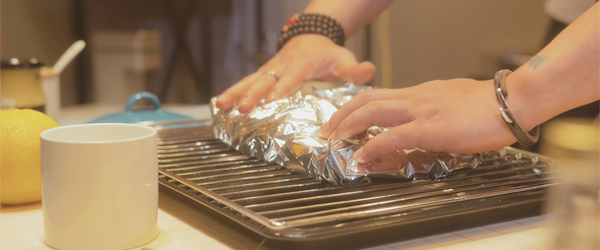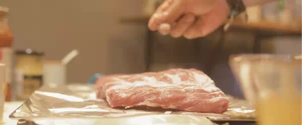3、肋排上方涂满上述酱汁,用铝箔纸包住肋排,置于烤盘上。